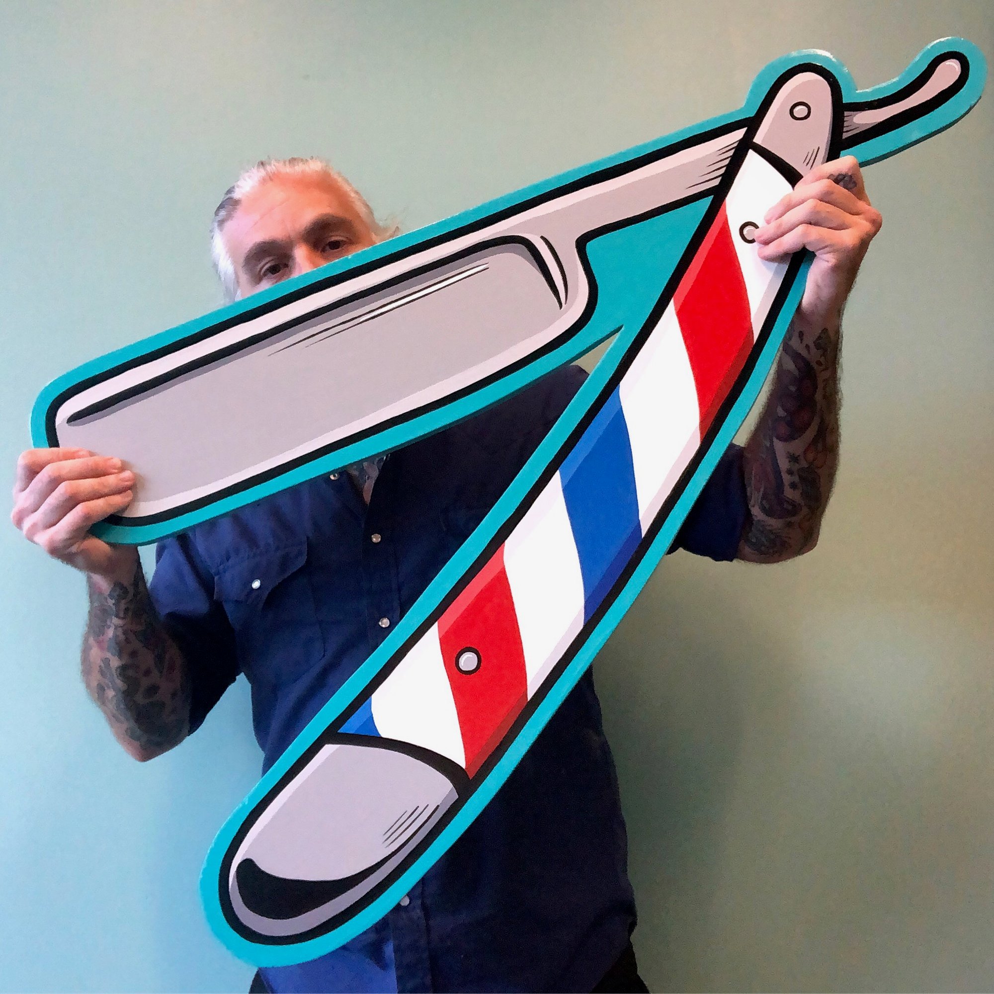 Barber Pole Straight Razor- Hand Painted SIgn
