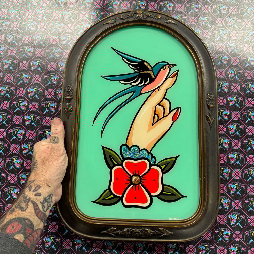 Bird on hand glass painting