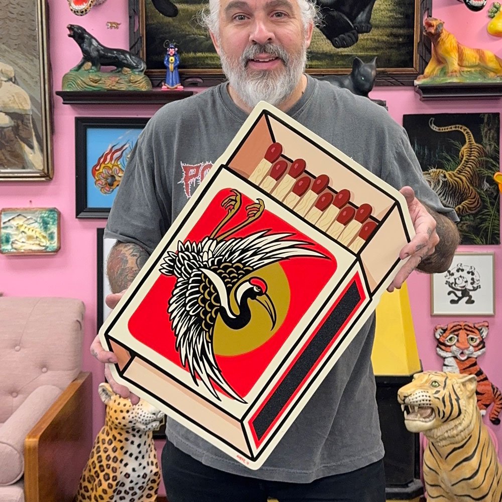 Hand painted wood cutout. Grip tape striker.