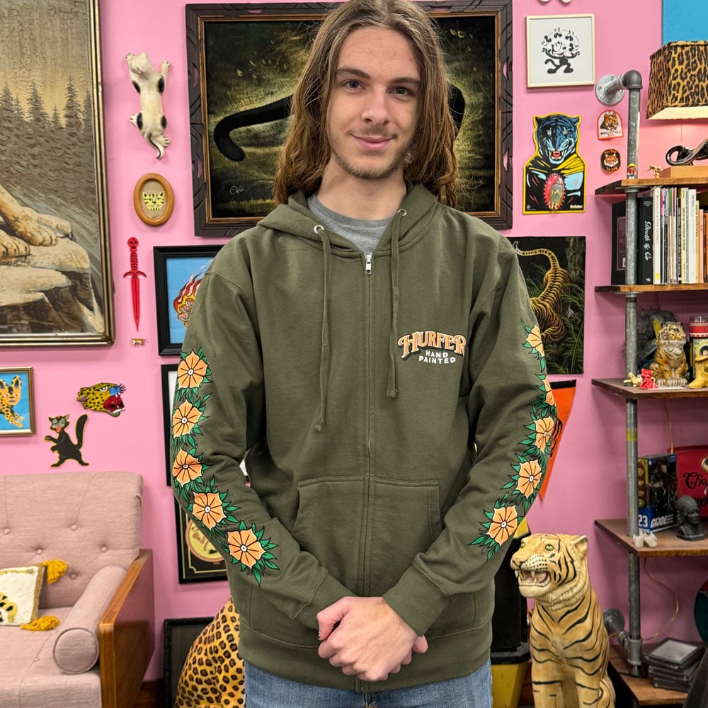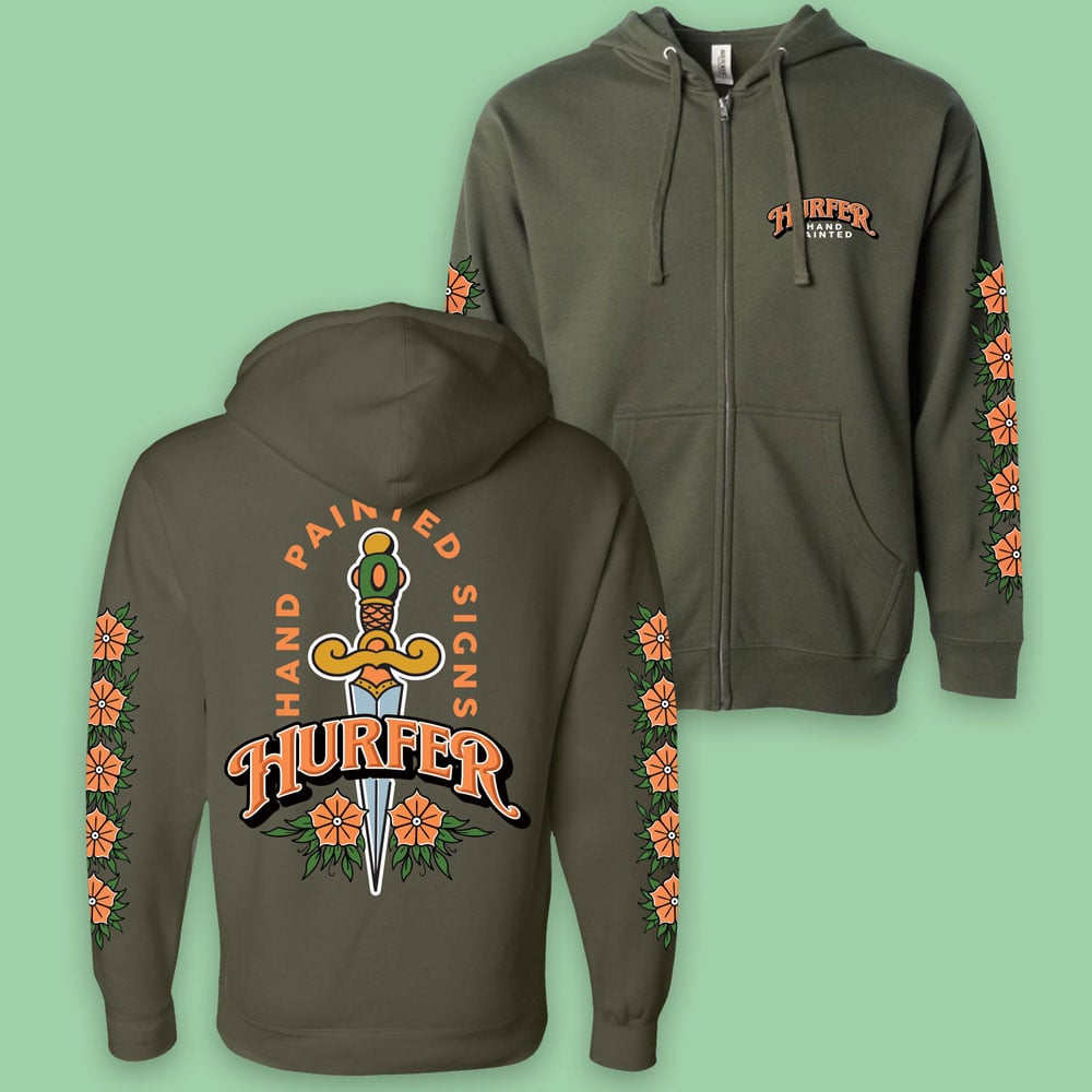 Printed on soft Independent Trading Co. mid-weight zip hooded sweatshirt.