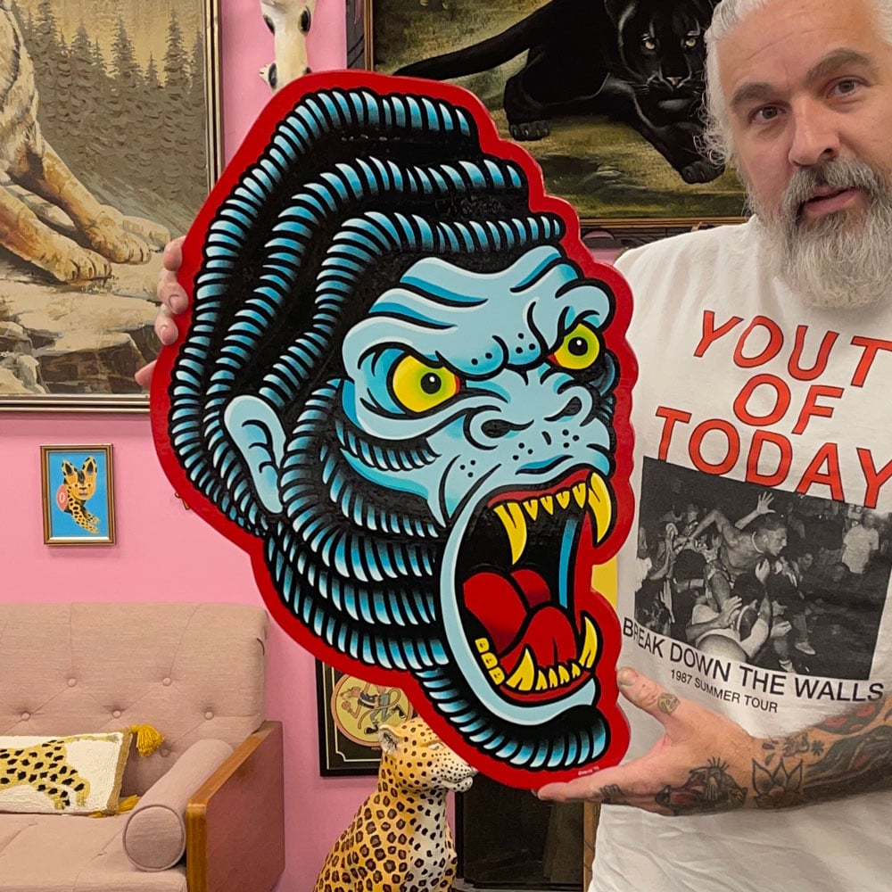 Hand Painted wood cutout. 16.2" x 24" Hanging hardware attached to the back. Signed & Dated by the artist. MADE TO ORDER. Please allow 4-8 weeks plus shipping time.