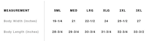 Size chart in images.