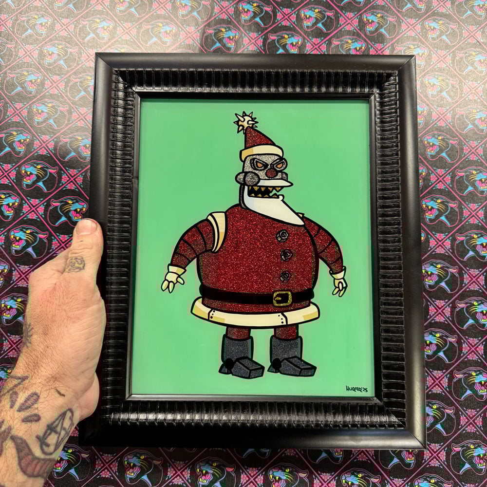 Painted on glass w/ enamel paint & glitter. framed in a repurposed frame.