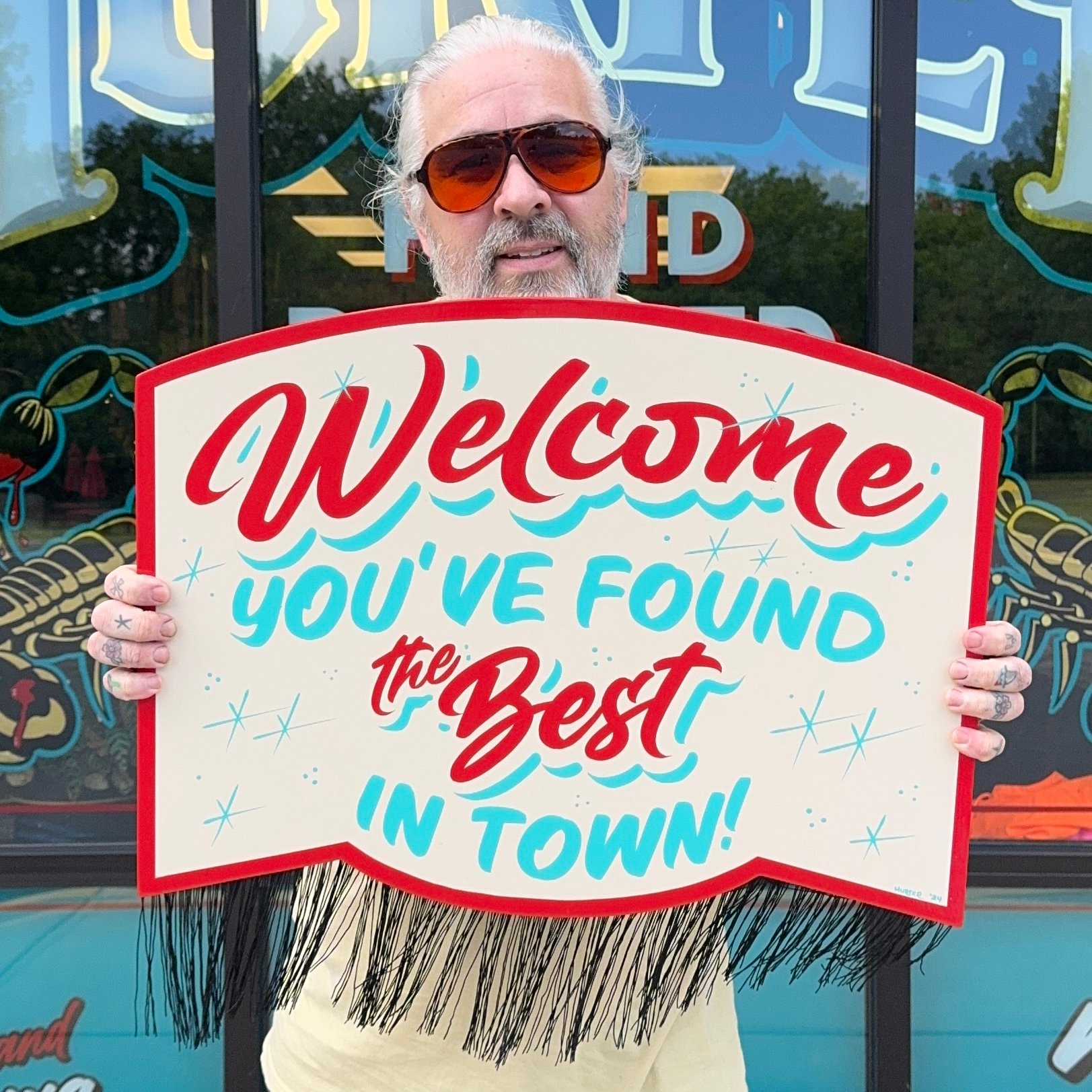 Best in Town- Hand Painted Wood cuout w/ fringe