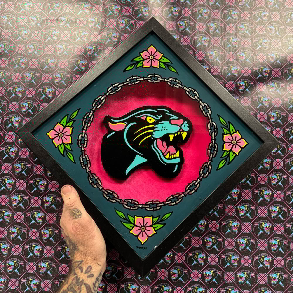 Panther Chain Shadow box- Wood & Glass painting