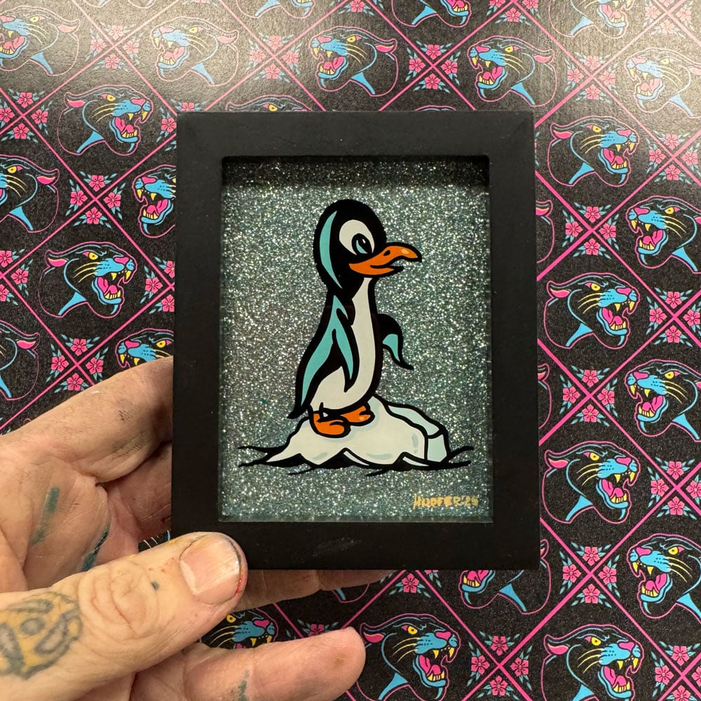 Penguin mini glass painting