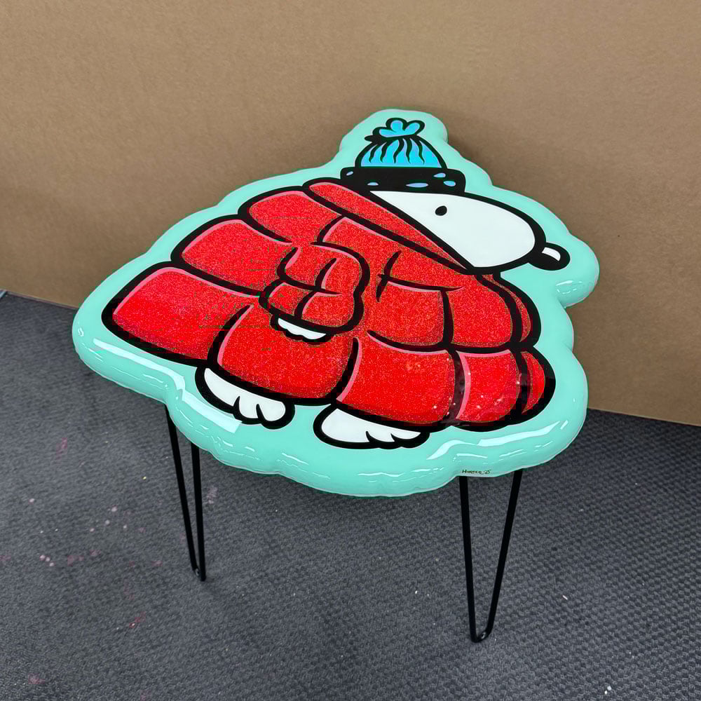 Red Puffy Coat- End Table